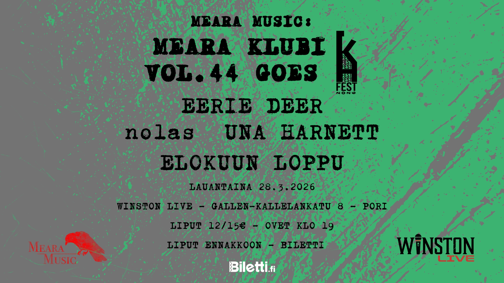Lauantaina 7.3.2026 MonoMassive Spring Edition @ Winston Live. Esiintyjinä: Cumbeast, Unknown Subject, Unborn Generation sekä Whisper.